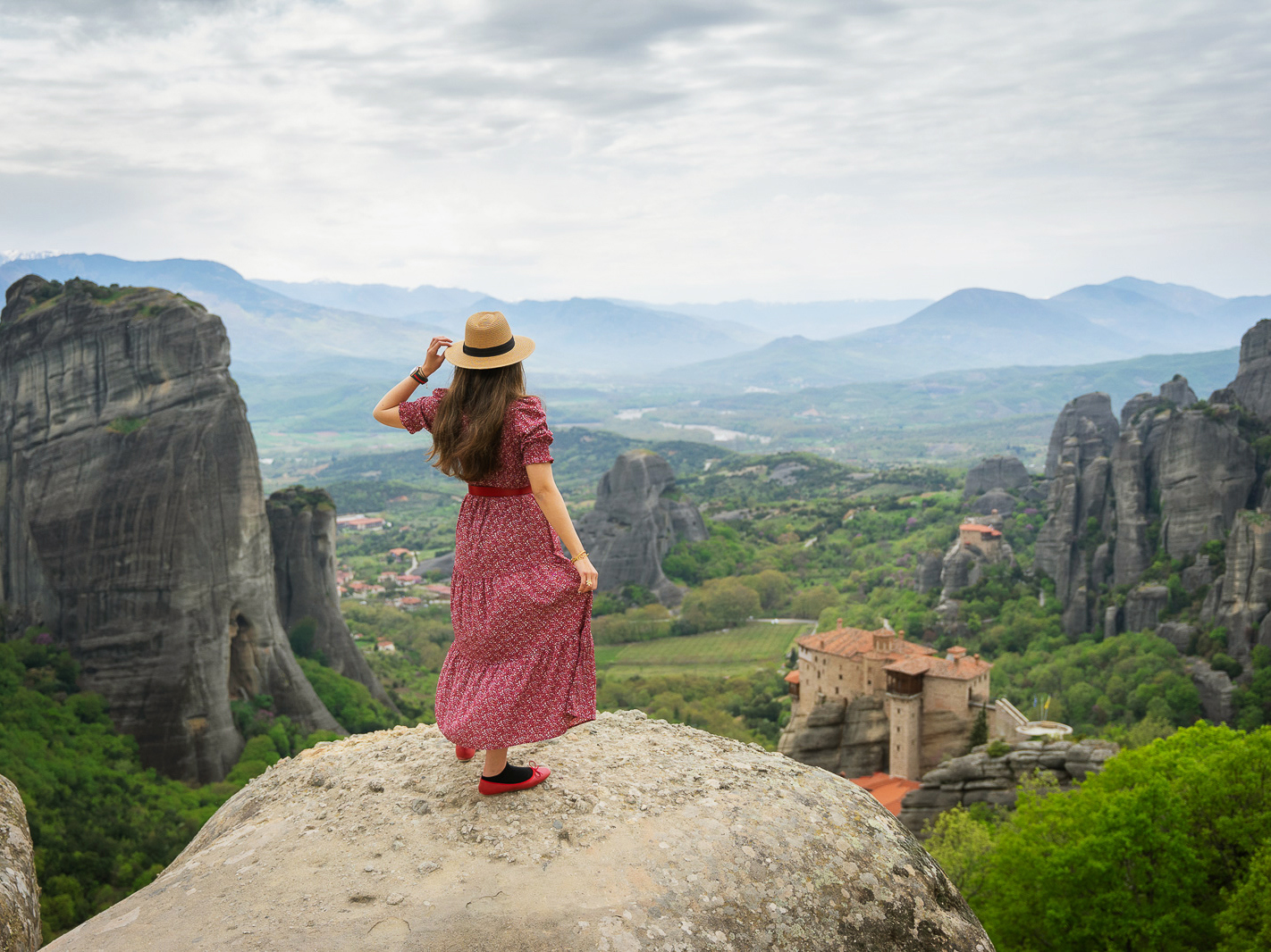 The smallest monastery in Meteora, built on a narrow rock in the 14th century, featuring notable frescoes and a peaceful, intimate atmosphere.