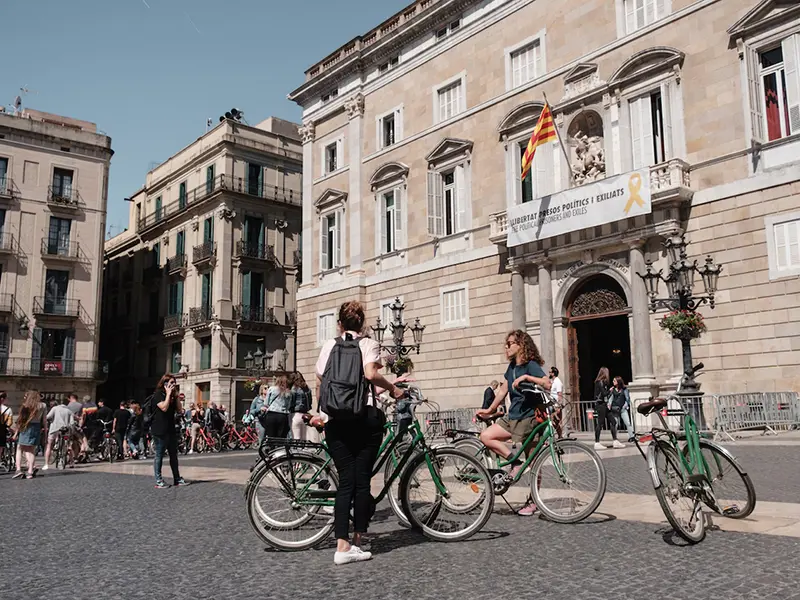 Pedal by Palau Güell into the medieval heart of Barcelona. Your guide shares quick context on old plazas, hidden lanes, and how this district shaped daily life in the city. -