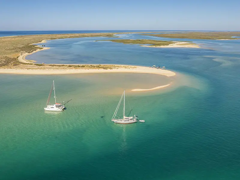 Explore Deserta and Farol islands by catamaran with a guide, & cruise through Faro's natural wonder