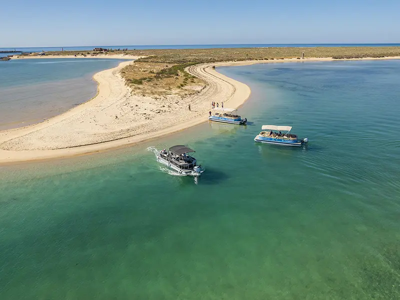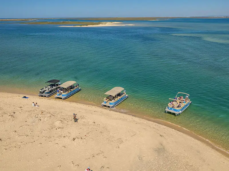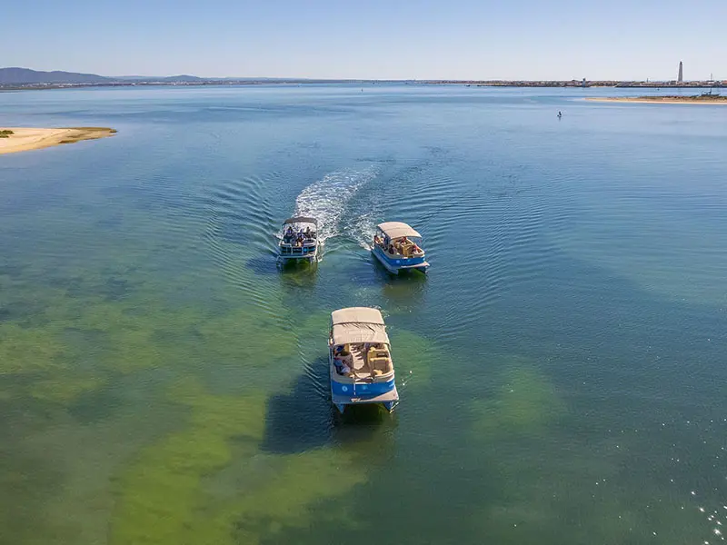 Gather at the Faro Docks near the marina to meet your expert skipper. The tour begins with a safety briefing before you board the comfortable catamaran and set sail into the calm, turquoise channels of the Ria Formosa. -