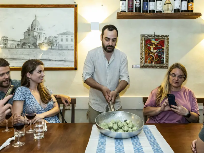 Settle in for a taste of Tuscany's zero-waste cooking tradition with pappa al pomodoro or ribollita, hearty bread soups that showcase the region's resourcefulness. Then, savor fresh pasta prepared by a local chef, paired with more Tuscan wine and stories of Florence's culinary roots.