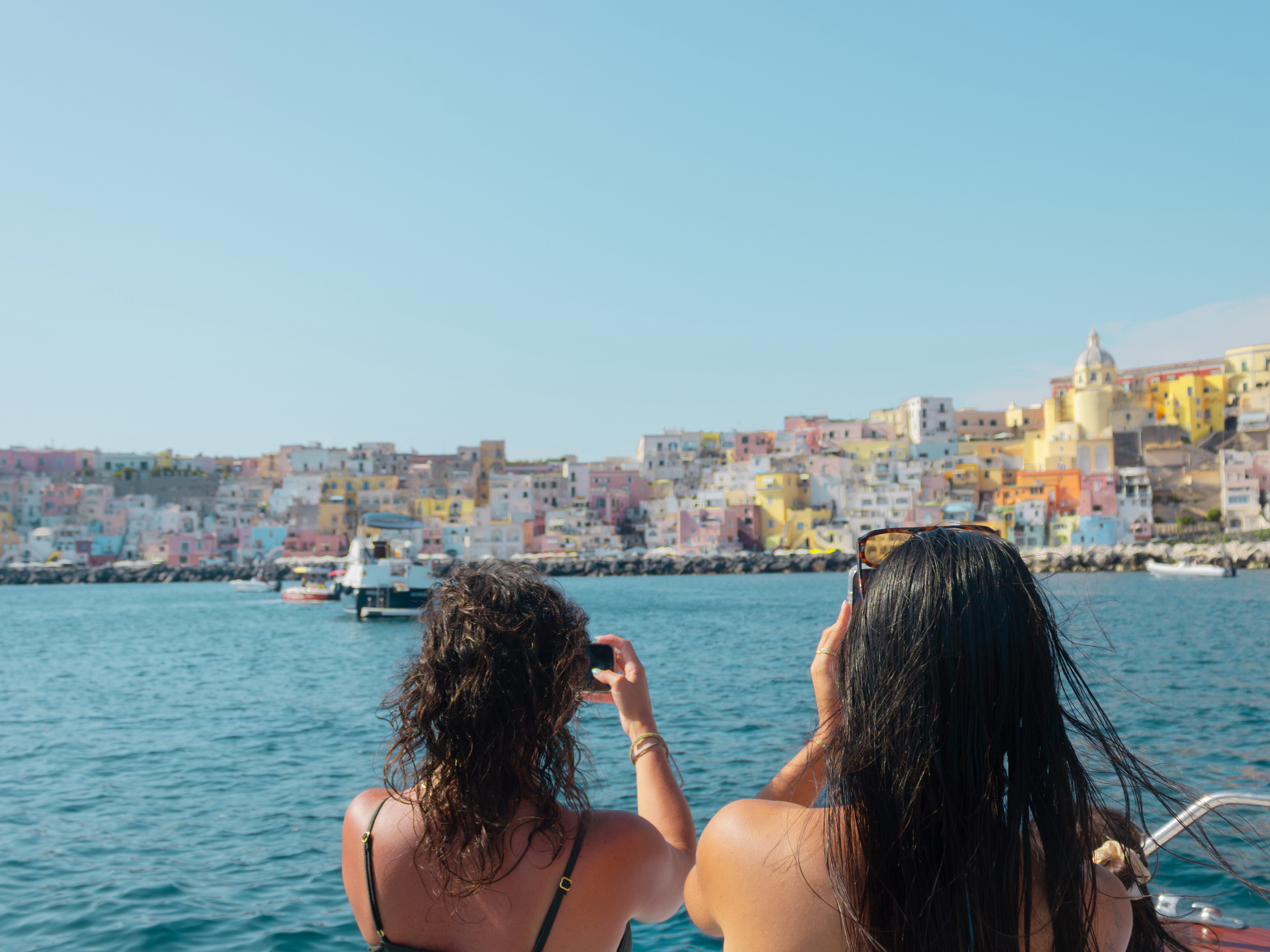 Sardine-packed beaches are not the vibe on vacation! Leave the selfie-stick hordes behind and hop on our boat to Procida, the quiet island Italy tried to keep for itself. We'll zip you to the famous film set beach of Massimo Troisi’s last movie “Il Postino,” and to a hidden natural swimming pool only known by locals of the area. Snap your photos of the famous Corricella harbor, then hit the docks for a perfect cone of gelato. Proper VIP treatment on a low-key island, now that's vacation.