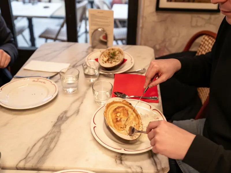 Finish strong with praline-filled brioche and a sip of regional liqueur. Perfect for Instagram photos, indulgent bites, and a taste of Lyon’s sweeter side. -