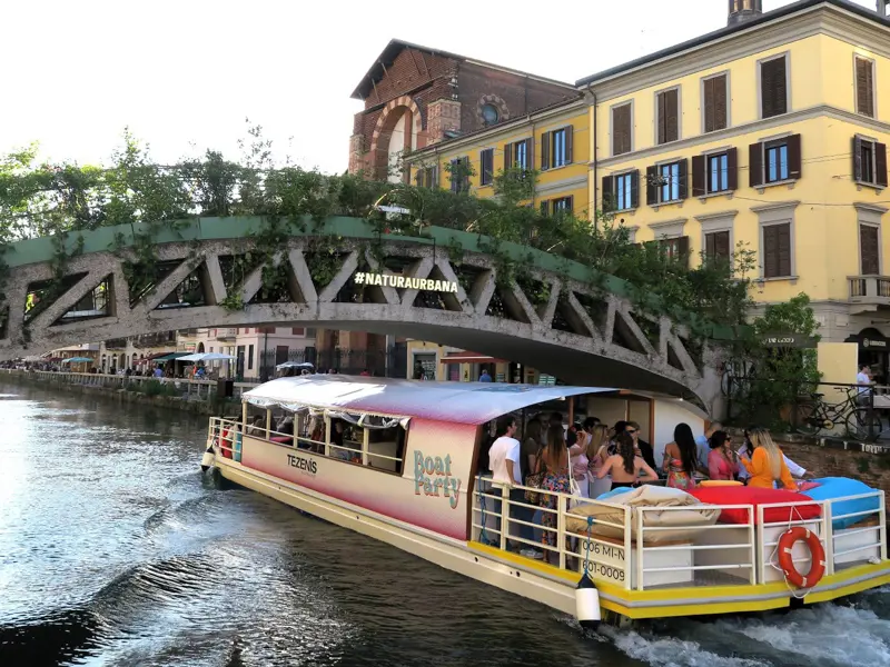 Board your electric boat and get ready to explore Milan’s historic canals in comfort and style. -