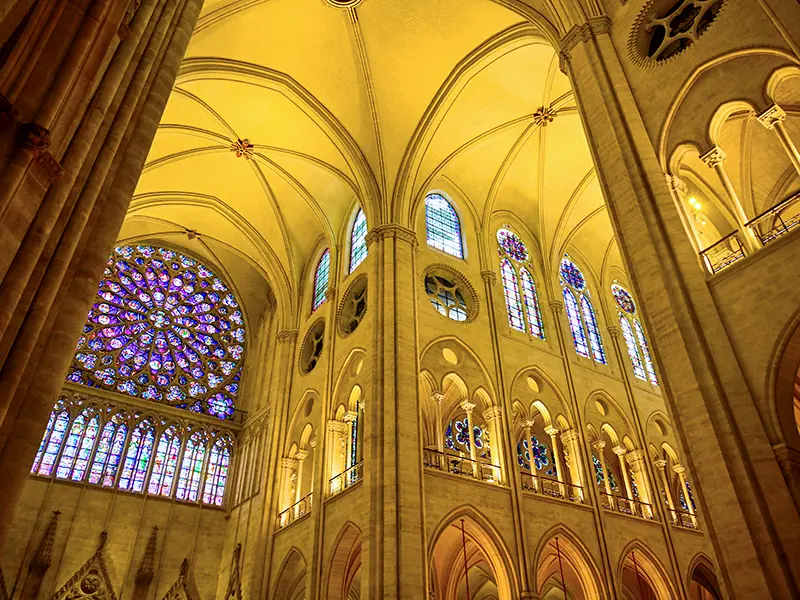 Gaze at the soaring vaulted ceilings that make Notre Dame a Gothic triumph. Your guide explains how medieval builders used flying buttresses to reach new heights, creating a blueprint for Gothic design across Europe. -