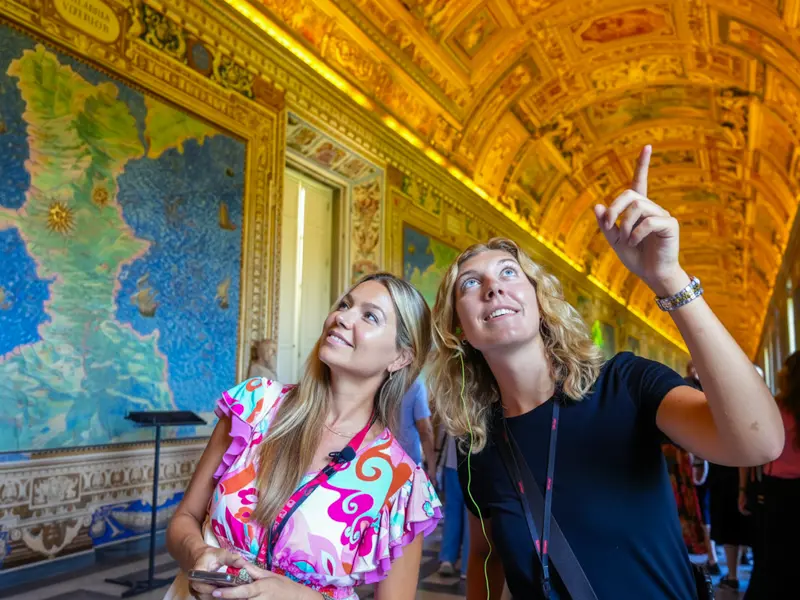 Walk through the Gallery of the Candelabra, Gallery of the Tapestries, and Gallery of Maps. Your guide highlights ancient sculptures, rich Flemish textiles, and Renaissance-era topographical maps of Italy, bringing each hallway to life with context and stories. -