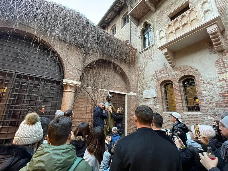 Descend on foot through narrow alleys lined with Renaissance façades. Stop at Romeo's House, Juliet's Balcony, and the ornate Scaliger Tombs from outside.