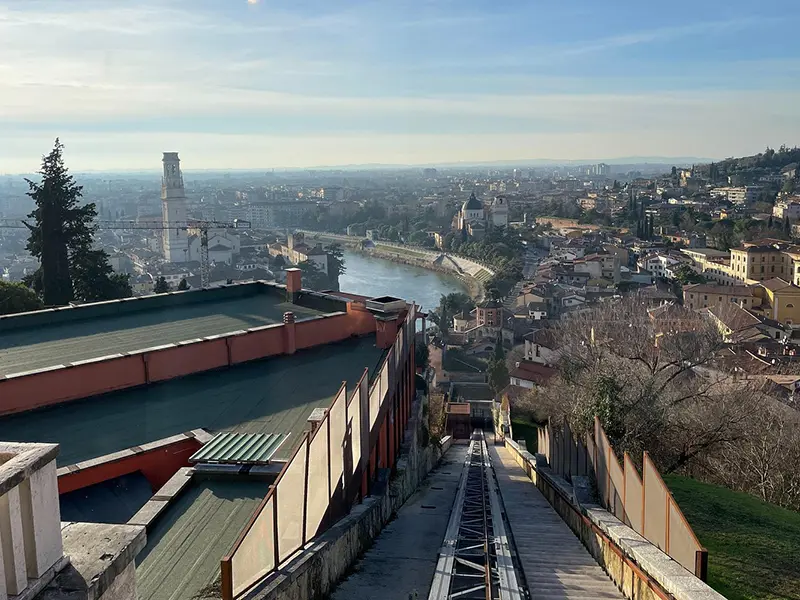 Ascend by cable car to the hilltop for sweeping views over Verona's terracotta rooftops and the winding Adige River below.