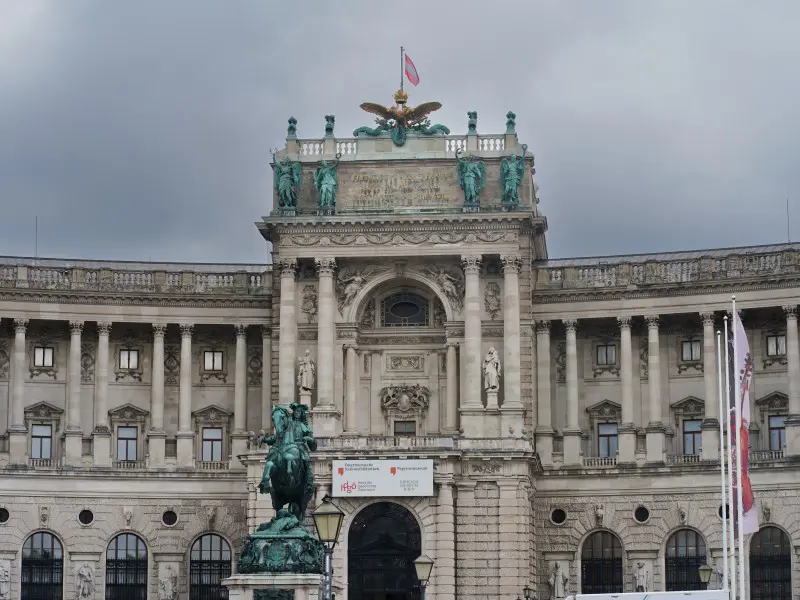 From Heldenplatz, you can admire the impressive Baroque facade of the Austrian National Library. Hear about its historical significance as a major collection of Habsburg holdings, once known as the Imperial Court Library. -